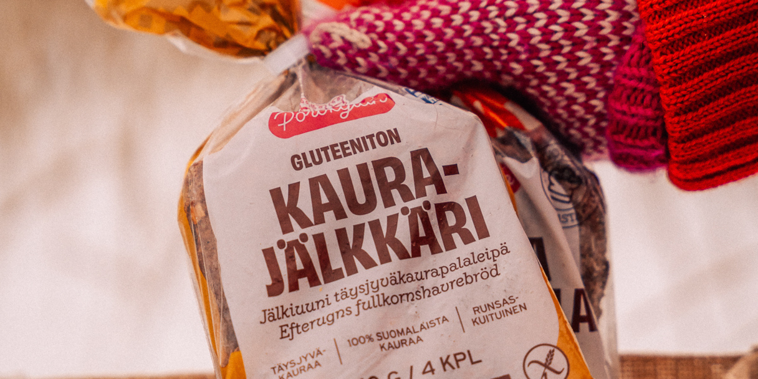 Suomalaista täysjyväkauraa 100 % viljaraaka-aineista ja 60 % leivän painosta.